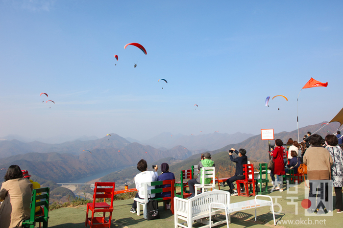 ![]() ▲ 오색단풍이 물든 가을, 패러글라이딩을 즐기는 동호인들의 모습 / 단양군 제공 © |