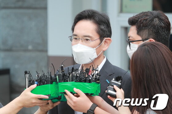 | 지난 13이 광복절 가석방으로 풀려난 이재용 삼성전자 부회장이 경기 의왕 서울구치소에서 나와 취재진의 질문에 답변하고 있다. 국정농단 사건으로 징역 2년 6개월을 선고 받고 재수감된 지 207일 만이다. 2021.8.13/뉴스1 © News1 구윤성 기자 |