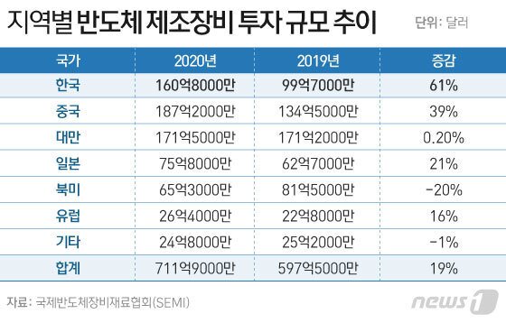 | 전 세계 반도체 제조장비 매출 추이(자료=SEMI) © 뉴스1 |