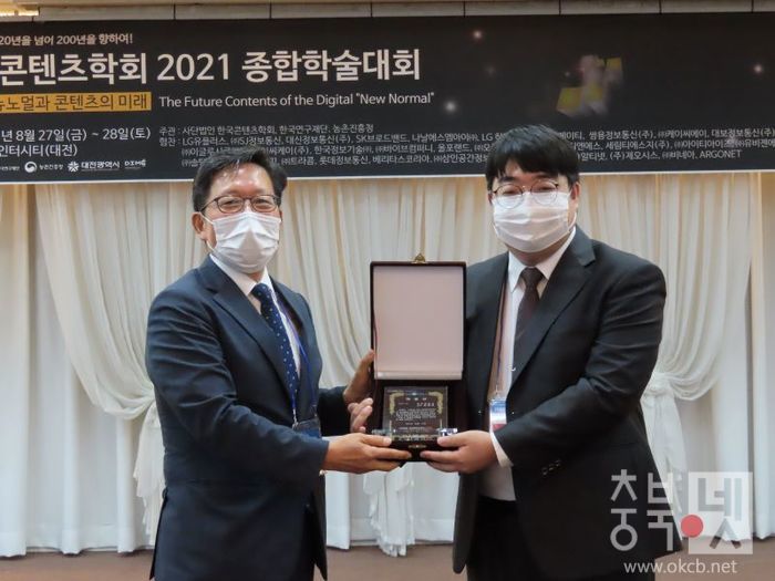 [충북넷=양영미 기자] 충북대학교(총장 김수갑) 전자정보대학 정보통신공학부 임종태 초빙교수가 한국콘텐츠학회의 '한국콘텐츠학회 2021 종합학술대회'에서 학술상을 수상했다.