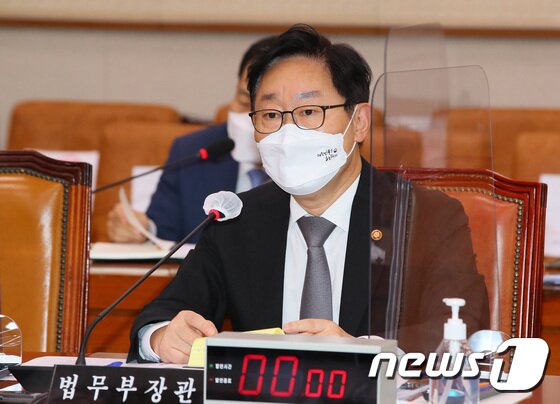 박 장관은 대검 수사정보담당관 폐지에 대한 의견을 묻는 김용민 더불어민주당 의원의 질문에 "과거 범죄정보정책관이라는 용어로 오랫동안 기능하다가 문무일 총장 때 수사정보정책관, 그 이후로 담당관 격하되고 여러 변철을 거듭했다"고 설명했다.