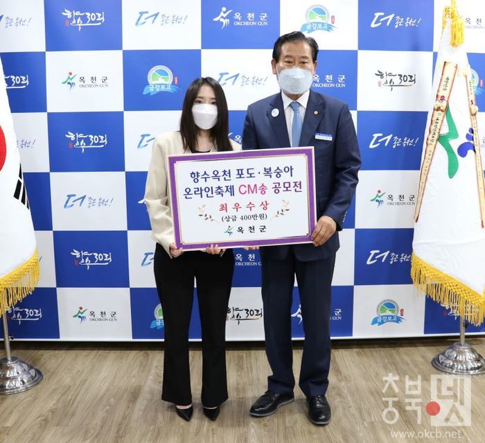 ![]() ▲ cm송 공모전 시상식(왼쪽부터 조안나 씨, 김재종 옥천군수) / 옥천군 제공 © |