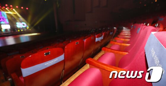 | 올해 20주년을 맞이한 전주세계소리축제 개막을 하루 앞둔 28일 전북 전주시 한국소리문화전당 모악당 공연장에 거리두기 좌석 표시가 돼있다. 2021.9.28/뉴스1 © News1 유경석 기자 |