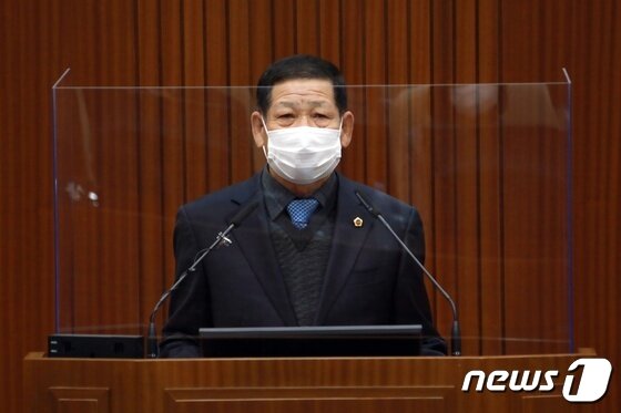 | 채평석 세종시의원이 11일 열린 시의회 72회 정례회에서 5분발언을 하고 있다. (세종시의회 제공) /2021.11.11/ © 뉴스1 |