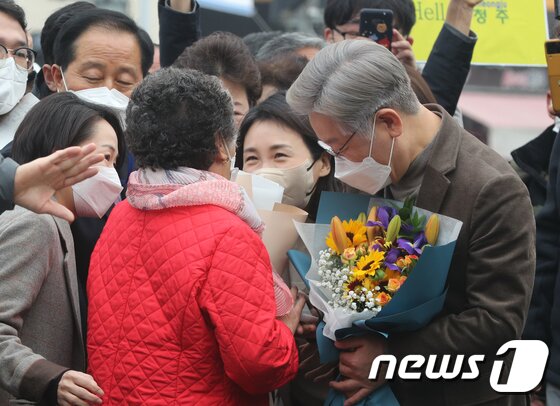 이날 이 후보와 김씨가 가는 곳마다 '이재명 대통령'을 연호하는 지지자들로 인산인해를 이뤘다. 이 후보와 김씨는 시민과 지지자들의 사진 요청에 일일이 응하며 지지를 호소했다.