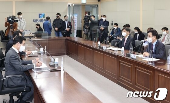 | 세종특별자치시(시장 이춘희)는 29일 대전세종연구원에서 '충청권 광역생활경제권 전략 수립연구용역' 최종보고회를 열고, 충청권 메가시티 전략과 협력 사업, 추진 체계 구축 방안을 논의했다.© 뉴스1 |