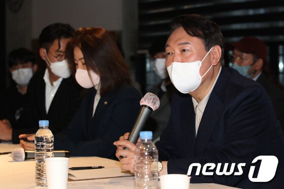 | 중앙선대위 출범 이후 첫 지방 행보에 나선 윤석열 국민의힘 대선 후보가 29일 오후 대전 유성구의 한 카페에서 열린 '청년과 함께 'With 석열이형' 토크콘서트에서 청년들의 질문에 답변하고 있다. 2021.11.29/뉴스1 © News1 오대일 기자 |