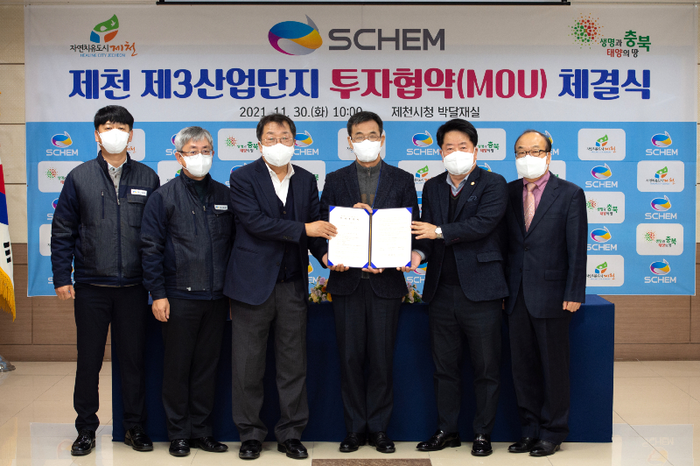 이번 투자협약은 ㈜에스켐의 주 생산품인 OLED 원재료 및 중간체의 국내 및 글로벌 수요 증가에 따른 사업 확장을 위한 제3산업단지 제천 제2공장 신설 계획으로, ㈜에스켐은 2023년까지 400억원을 투자하여 제3산업단지 내 14440㎡ 규모의 생산 공장을 신설할 계획이며, 60여명의 근로자를 신규 채용할 예정이다.