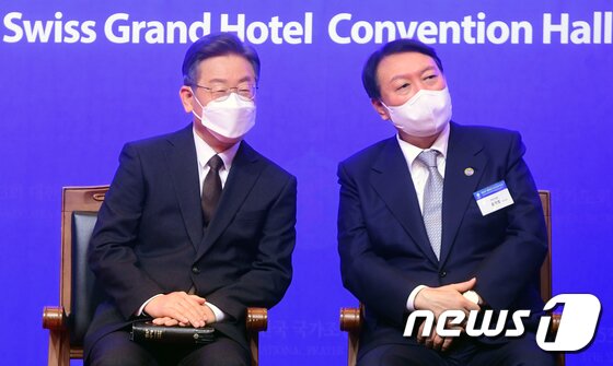 | 이재명 더불어민주당 대선 후보와 윤석열 국민의힘 대선 후보 2021.12.2/뉴스1 © News1 국회사진취재단 |