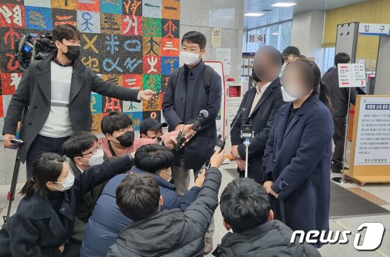 | 여중생 유가족이 재판을 마친 뒤 취재진 질문에 답하고 있다. © 뉴스1 |