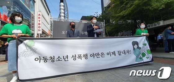 | 충북 청주 오창 성범죄 피해 여중생 이미소양 유족은 9일 청주 성안길 사거리에서 기자회견을 열어 사건과 관련한 새로운 증거를 공개하고 수사를 촉구했다.2021.9.9/© 뉴스1 조준영 기자 |