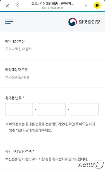 | 신종 코로나바이러스 감염증(코로나19) 얀센 백신 접종자 대상 부스터샷 사전예약 화면.(코로나19 예방접종 사전예약 시스템 갈무리).2021.12.15/© 뉴스1 |