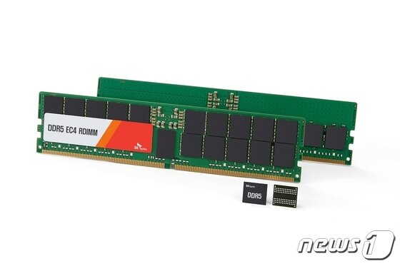 | SK하이닉스가 업계 최초로 샘플 출하한 24Gb DDR5 D램과 96㎇, 48㎇ D램 모듈. (SK하이닉스 제공)© 뉴스1 |
