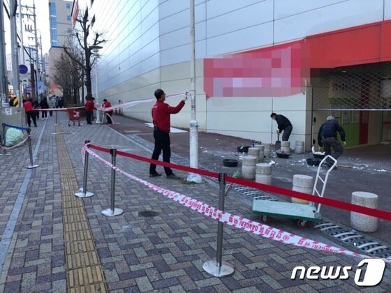 A씨는 “큰일이 난 것 같아 나가보니 택시가 신호 대기 중이던 차량 위에 떨어져 있더라. 먼지가 자욱해 한동안 앞을 보기 힘들었다”며 “마트 외벽 파편이 여기저기 떨어져 있어 심각한 상황”이었다고 말했다.