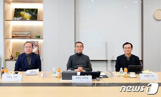 | LG에너지솔루션이 10일 오후 서울 여의도 파크원 본사에서 온라인 기자간담회를 열고, 중장기 사업 비전과 전략을 공개했다. (왼쪽부터) LG에너지솔루션 CFO 이창실 전무, LG에너지솔루션 CEO 권영수 부회장, LG에너지솔루션 CPO 김명환 사장.© 뉴스1 |