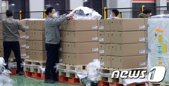 | 화이자사의 코로나19 먹는 치료제 ‘팍스로비드‘가 13일 오후 충북 청주시 흥덕구 오창읍 유한양행 물류창고로 입고돼 관계자들이 수량과 온도 등을 확인하고 있다. 이날 입고된 치료제는 2만1000명분으로 14일부터 전국 생활치료센터와 약국에 공급한다. 2022.1.13/뉴스1 © News1 김용빈 기자 |