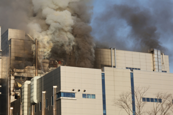 ![]() ▲ 지난 21일 청주 오창읍에 위치한 에코프로비엠 공장에서 화재가 나고 있는 모습. © |