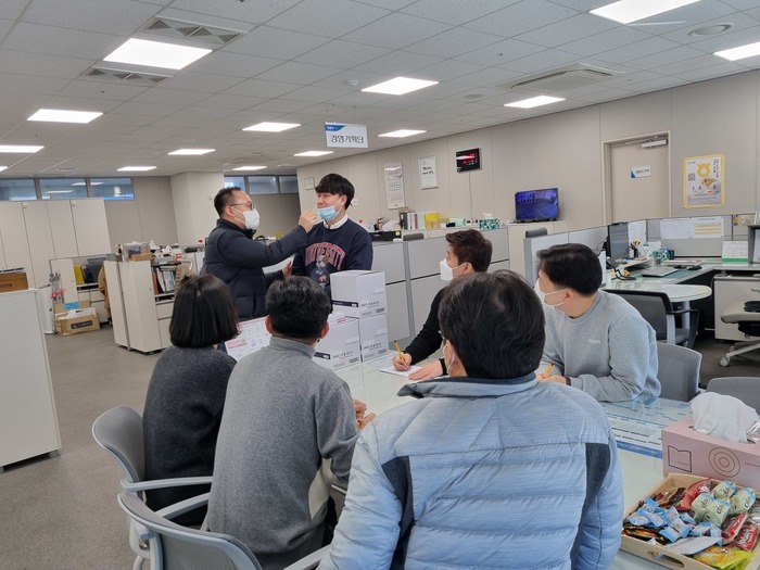 이정표 본부장은 “설 연휴를 마치고 3일 아침 출근 전 자가진단키트를 활용하여 상태를 확인 후 출근 해 달라 ”며 “모든 임직원들이 방역수칙을 지키며 즐겁고 행복한 설 명절을 보내길 바란다”고 말했다.