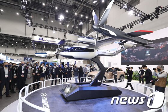 | 21일 대구 북구 엑스코(EXCO)에서 개막한 '대구 국제 미래자동차엑스포 2021'를 찾은 관람객들이 현대자동차 부스에서 도심 항공 모빌리티 UAM(Urban Air Mobility)을 살펴보고 있다. 미래형 항공운행 수단으로 '플라잉 카(Flying Car)'라고도 불리는 UAM은 도시집중화가 야기한 각종 문제를 해결할 대안으로 꼽힌다. 전기 배터리를 사용해 탄소배출이 없다는 장점을 갖췄다. 올해 5회를 맞이한 대구 국제 미래자동차 엑스포는 '모빌리티를 혁신하다, 변화를 이끌다'를 주제로 미래 모빌리티 기술과 대표 친환경차 라인업을 선보인다. 전 세계 161개사가 1000여개 부스를 마련하고 20개 세션과 74개 강연도 열리는 등 코로나19 이전 규모를 회복한 모습이다. 전시는 24일까지. 2021.10.21/뉴스1 © News1 공정식 기자 |