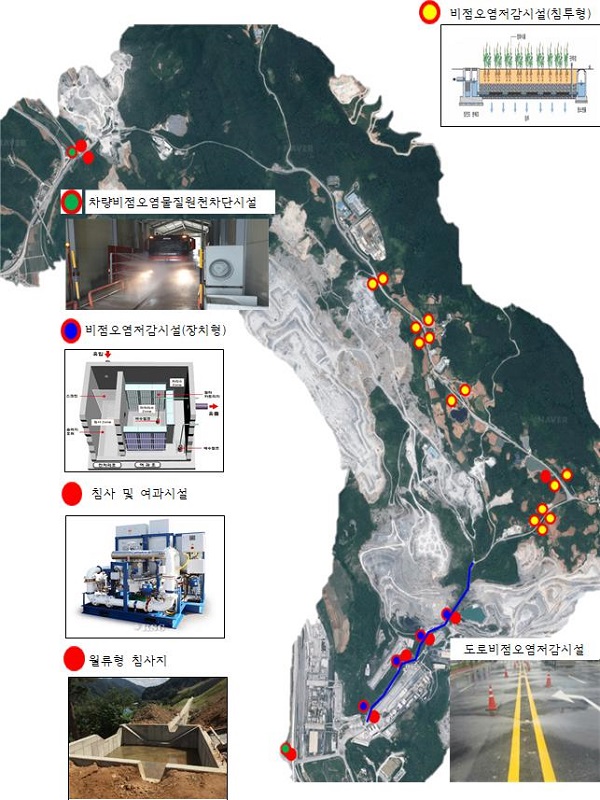 2024년 준공을 목표로 매포읍 하시삼거리∼하괴삼거리 8.6km 구간에 IoT기반 노면살수시설(1.5km), 대형세차시설(2개소), 자연형침투시설(14개소) 설치를 통한 중금속 등 비산먼지 발생을 효과적으로 억제한다는 계획이다.