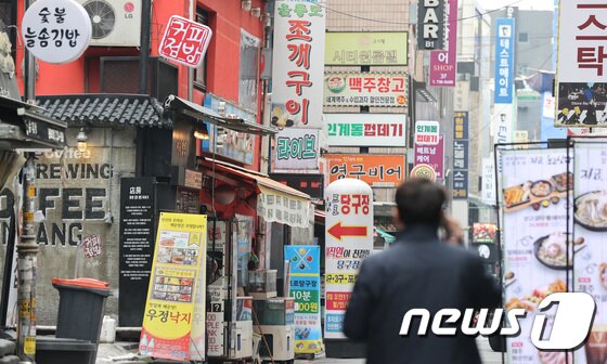| 4일 오후 서울 종로구의 식당가 앞으로 시민이 지나가고 있다. 2022.3.4/뉴스1 © News1 박지혜 기자 |