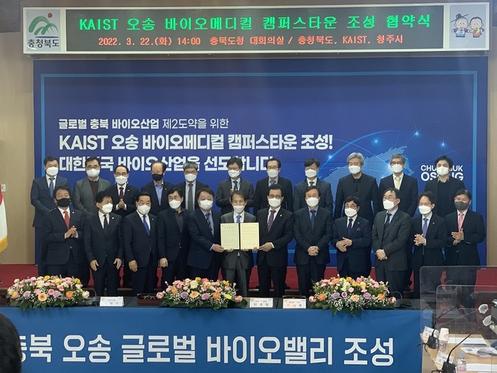 충북도와 KAIST, 청주시는 22일 도청 대회의실에서 KAIST 오송 바이오메디컬 캠퍼스타운(이하 KAIST 오송캠퍼스) 조성 업무협약을 체결했다.