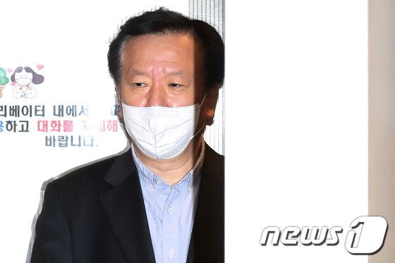 | 정호영 보건복지부 장관 후보자가 20일 오전 서울 서대문구 국민연금공단 서울북부지역본부에 마련된 인사청문회 준비 사무실로 출근해 승강기에 올라 있다. 2022.4.20/뉴스1 © News1 민경석 기자 |