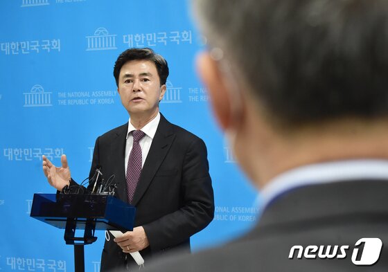| 김태흠 국민의힘 의원이 13일 서울 여의도 국회 소통관에서 제8회 전국동시지방선거 관련 충남도지사 출마 선언 기자회견 후 취재진 질문에 답하고 있다. 2022.4.13/뉴스1 © News1 허경 기자 |
