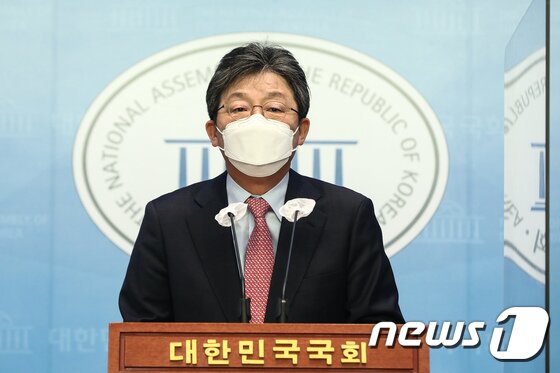 | 국민의힘 경기도지사 선거에 출마한 유승민 전 의원이 19일 오전 국회 소통관에서 기자회견을 열고 지지를 호소하고 있다. (공동취재) 2022.4.19/뉴스1 © News1 유승관 기자 |