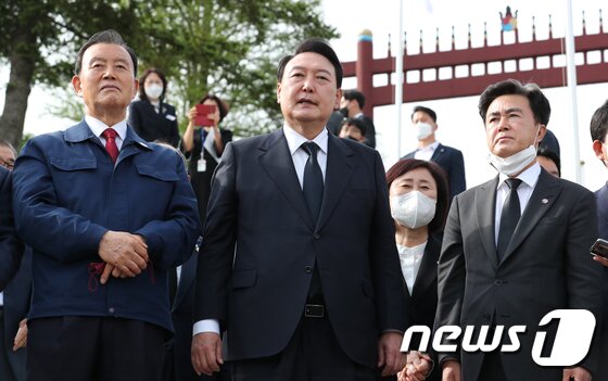 신 대변인은 전날 윤 당선인이 김태흠 충남지사 후보와 동행한 자리에서 "저희 집안이 충청에서 뿌리내린 집안"이라며 "충청의 아들"이라고 한 발언과 이날 이장우 대전시장 후보와 사진촬영을 한 것을 문제 삼았다.