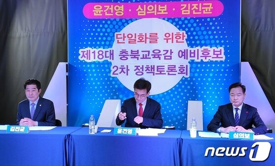 | 충북교육감 선거 보수성향 예비후보 단일화를 위한 2차 정책토론회 모습.© 뉴스1 |