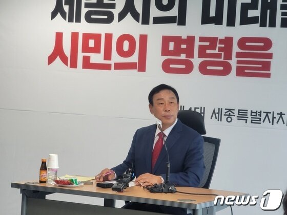 | 최민호 세종시장 당선인이 지난 7일 오전 어진동 복컴 인수위 사무실에서 기자회견을 열어 민선 4기 구상을 밝히고 있다. © 뉴스1 장동열 기자 |
