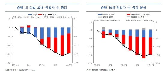 한국은행 충북본부는 여성의 미취업 상태가 길어지면 경력, 가사, 육아 등의 문제로 노동시장 복귀가 남성보다 어려워지고, 그만큼 지역 경제 회복도 느려질 수 있다고 진단했다.