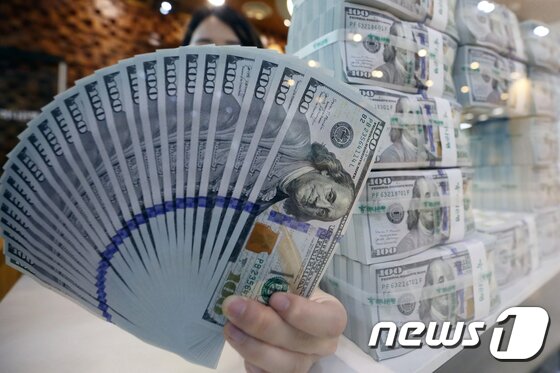 | 5일 서울 중구 하나은행 위변조대응센터에서 직원이 달러를 정리하고 있다. © News1 |