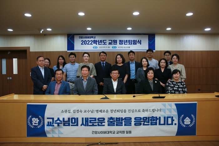 건양사이버대학교(총장 이원묵)는 지난 22일 대학 내 2층 어니스티홀에서 전임교원 2명의 정년 퇴임식을 진행했다고 밝혔다.