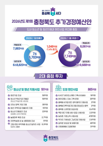 충북도, 1회 추경 1,046억 원 증액 편성... 청년·현안사업 집중