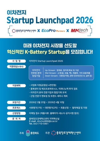충북도, 이차전지 스타트업 육성사업 추진... 4월 10일까지