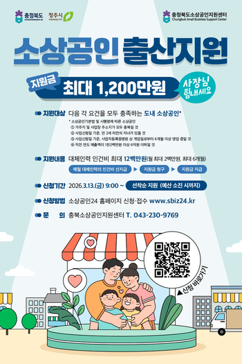 [충북넷 신수빈 기자] 충북 청주시는 출산과 육아로 인한 경영 공백을 줄이기 위해 ‘소상공인 출산 지원사업’을 본격 시행한다. 이번 사업은 3억 9000 ...