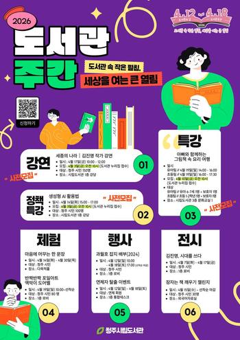 [충북넷 신수빈 기자] 충북 청주시립도서관은 이달 도서관주간을 맞아 오는 12~30일까지 시민 참여형 독서문화 프로그램을 운영한다. 이번 도서관주간은 ...